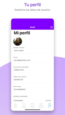 Los trabajadores, por su parte, disfrutarán de una experiencia intuitiva y empoderadora. Realice el fichaje de entrada y salida con solo un toque, facilitando el cumplimiento de su horario laboral. Consulte al instante sus días de vacaciones disponibles y acceda a su histórico de nóminas y jornadas anteriores con total transparencia y seguridad. Esta sección personal se convierte en su aliado para tener siempre a mano la información más relevante sobre su actividad profesional, mejorando la autonomía y la comunicación con la empresa.