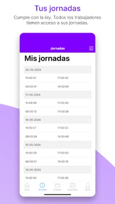 Optimice la gestión del tiempo y la supervisión del personal con una solución diseñada para la eficiencia moderna. Esta herramienta innovadora transforma la forma en que empresas y empleados interactúan con el registro de jornada. Diga adiós a los procesos manuales y a la incertidumbre, dando la bienvenida a un sistema ágil que simplifica las tareas administrativas más cruciales, asegurando transparencia y cumplimiento para todos los involucrados.