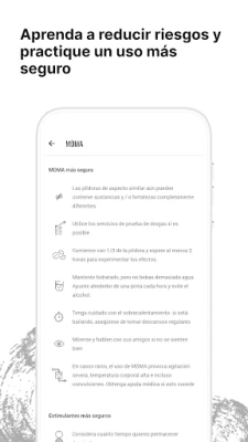 KnowDrugs encarna la filosofía de la reducción de daños, una estrategia proactiva diseñada para minimizar los riesgos inherentes al uso de sustancias recreativas. Reconociendo que el consumo conlleva peligros potenciales, la aplicación le equipa con estrategias prácticas para mitigar esos daños y salvaguardar su bienestar. Además, KnowDrugs le prepara para actuar eficazmente en situaciones de emergencia, enseñándole a identificar y responder ante un mal viaje o a cuidar de alguien en apuros. Si busca apoyo adicional para abordar sus hábitos de consumo, KnowDrugs le conecta con servicios de asesoramiento gratuitos y confidenciales, ofreciéndole un espacio seguro para desarrollar estrategias personalizadas de cambio.